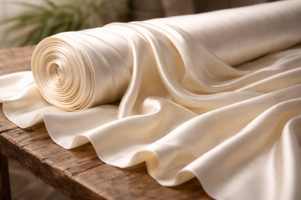 - Jedwab dziki (tussah) – o nieregularnej strukturze i naturalnych odcieniach.